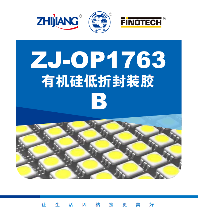本產品為雙組份低折射率有機硅液體封裝膠,ZJ-OP1763A/B 由A、B 兩組分組成,屬于 1.41 折射率硅膠,適用于Molding 成型、SMD 封裝、COB 封裝和集成封裝等。本品電器絕緣性能,對金屬(銅,銀,鋁)等材料和PPA 附著力強,并且熱穩定性卓越,可較長時間耐250℃高溫,在-60~220℃可長期使用。同時具有優異的抗熱老化性能以及可見光范圍內穿透性能。